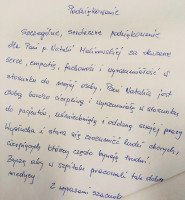Bardzo nas cieszą takie dowody uznania i wdzięczności pacjentów naszego Szpitala, jak te, które otrzymaliśmy w ostatnich dniach. Tym razem docenieni zostali lekarze, pielęgniarki i cały personel medyczny Oddziału Klinicznego Chorób Wewnętrznych i Gerontokardiologii. Jest nam miło, że pobyt w Oddziale spełnił oczekiwania naszych pacjentów, a za ciepłe słowa SERDECZNIE DZIĘKUJEMY.